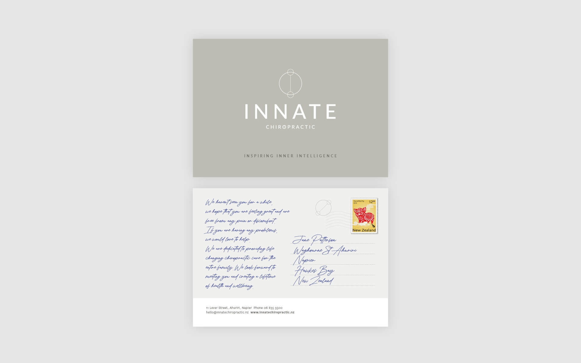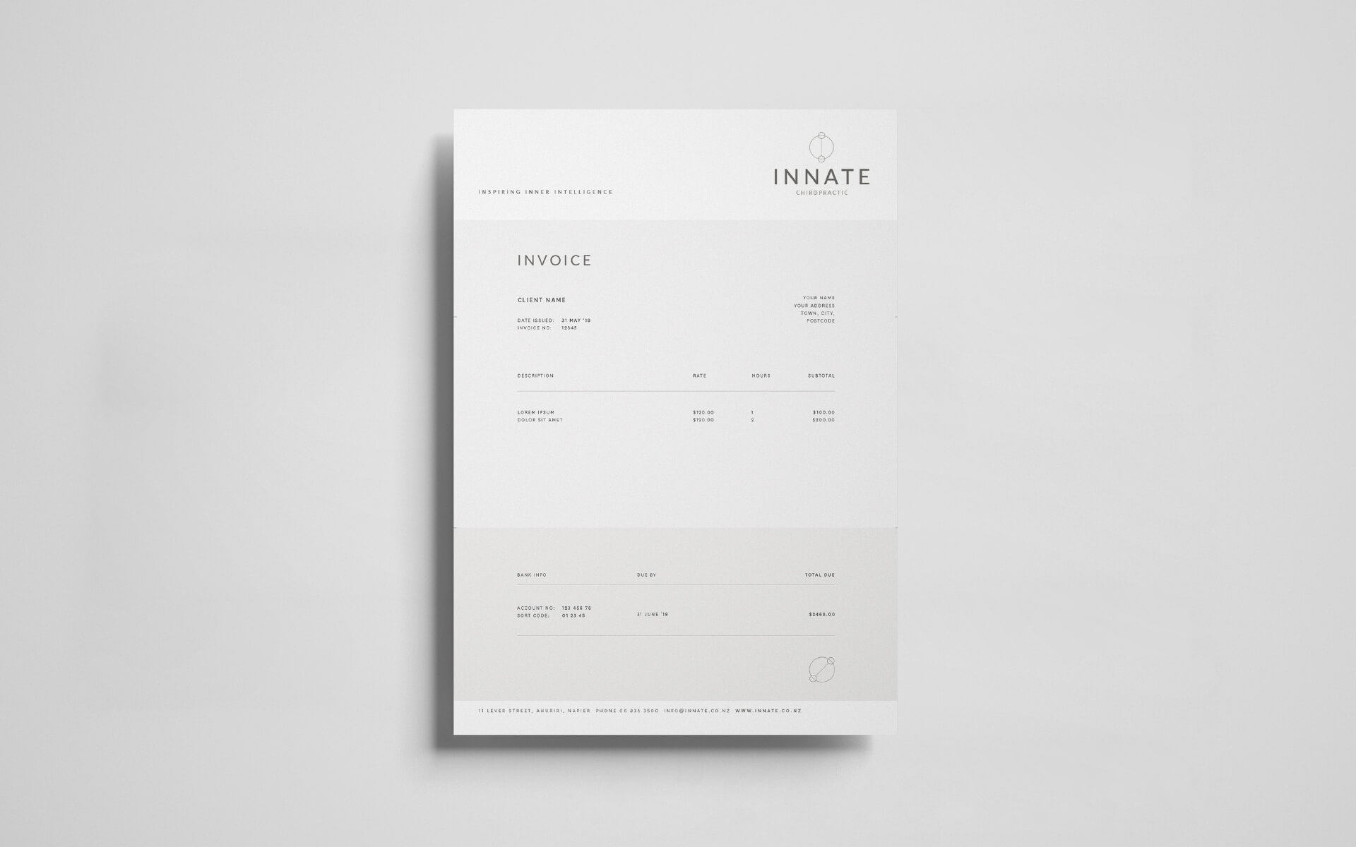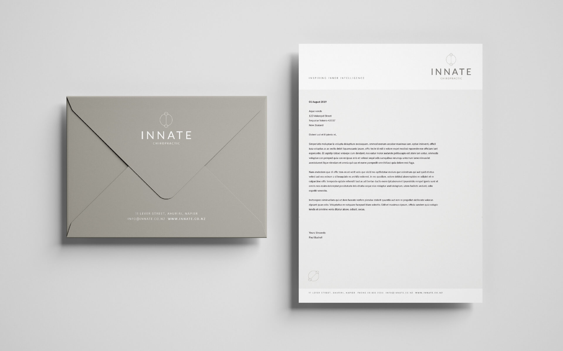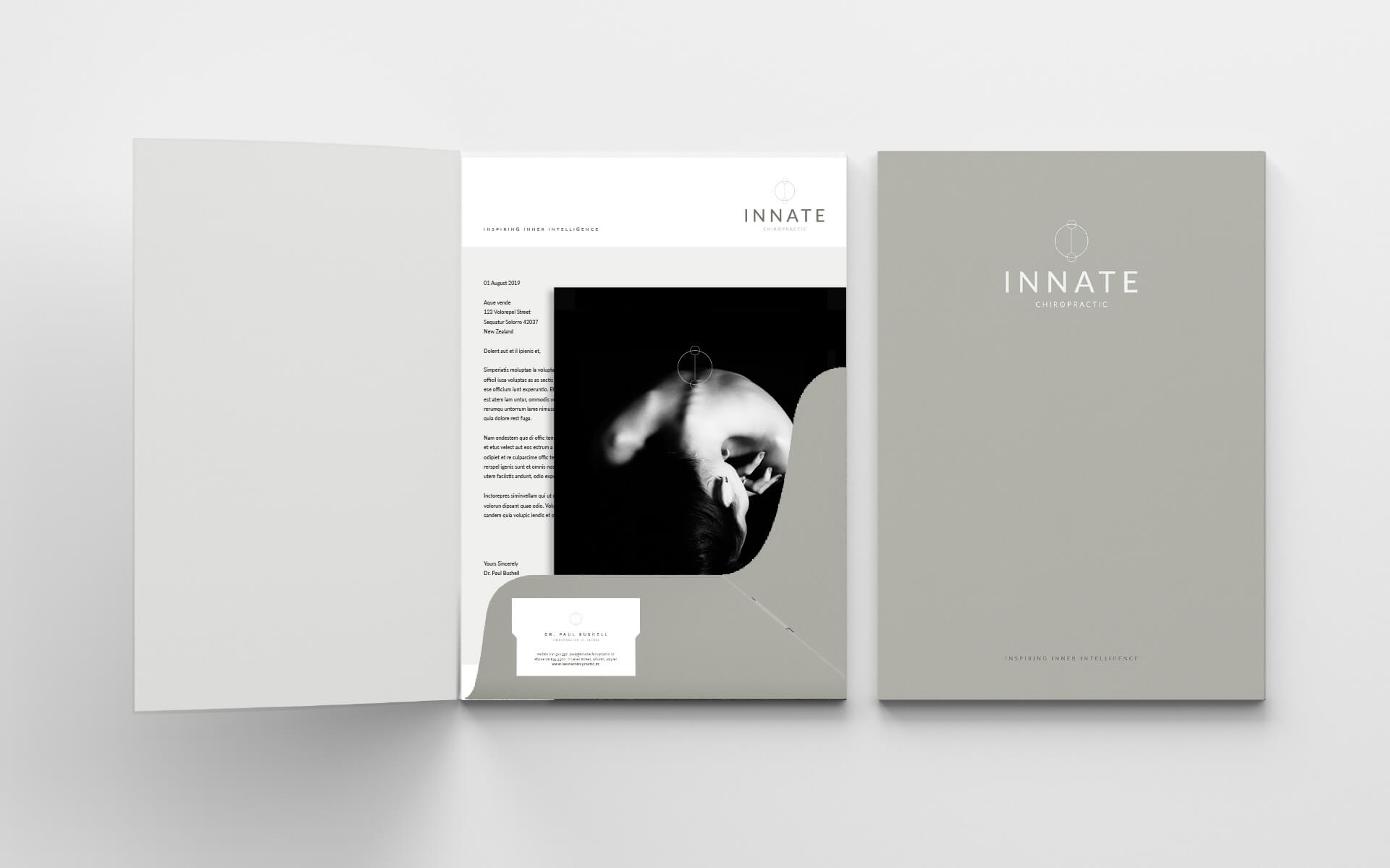 Innate is a chiropractic practice that take an holistic approach to their work. They required a new brand identity that reflected this natural way of approaching their work and using very natural and neutral colour tones.