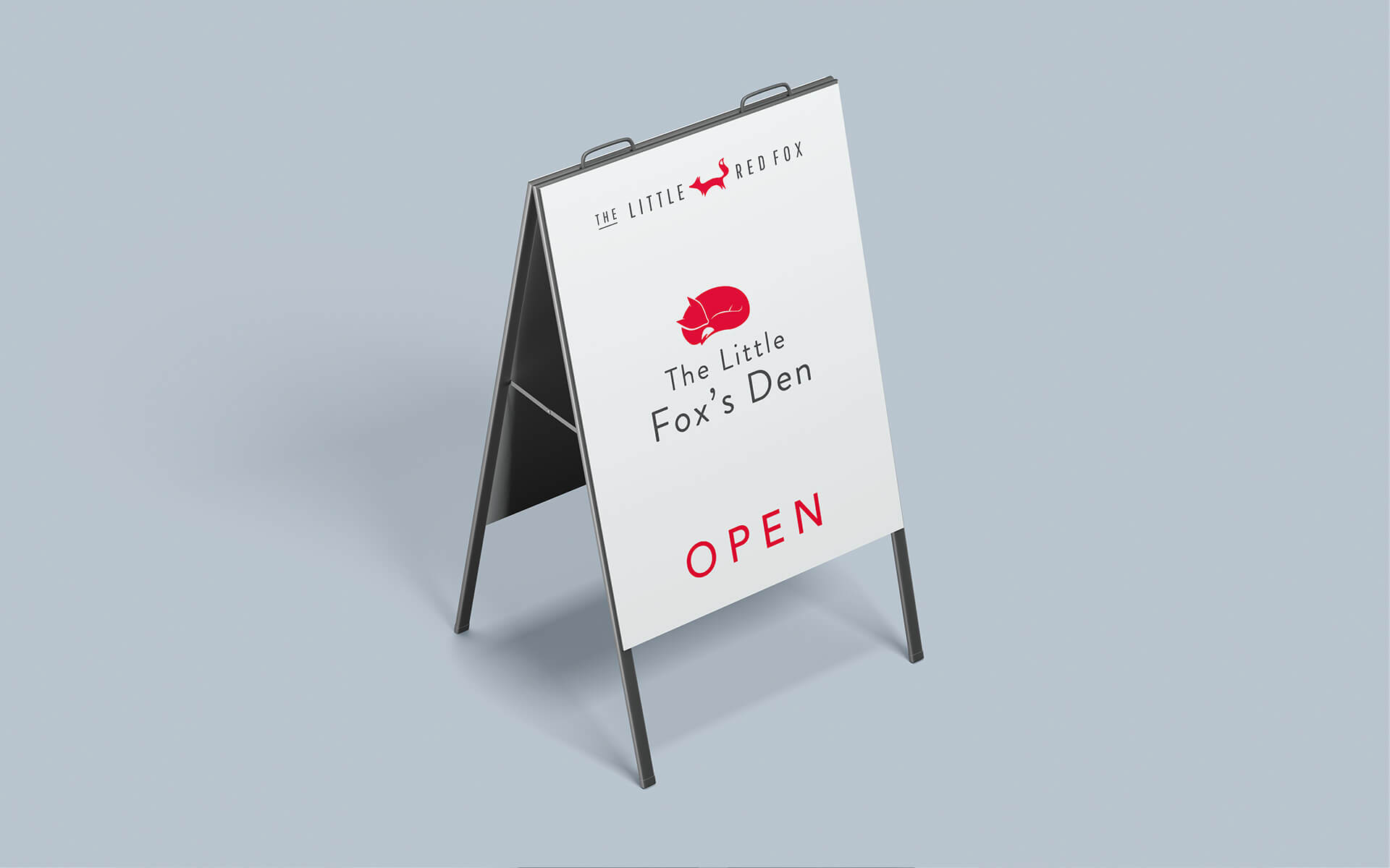 In addition to the main brand, The Little Fox's Den is a kids clothing sub brand of The Little Red Fox. They required a brand that tied in to the main brand but was aimed at kids and had a 'children's book' illustration style that kids could respond to. The result was a cute sleeping fox pup that also could fit snuggly beneath The little Red Fox logo.