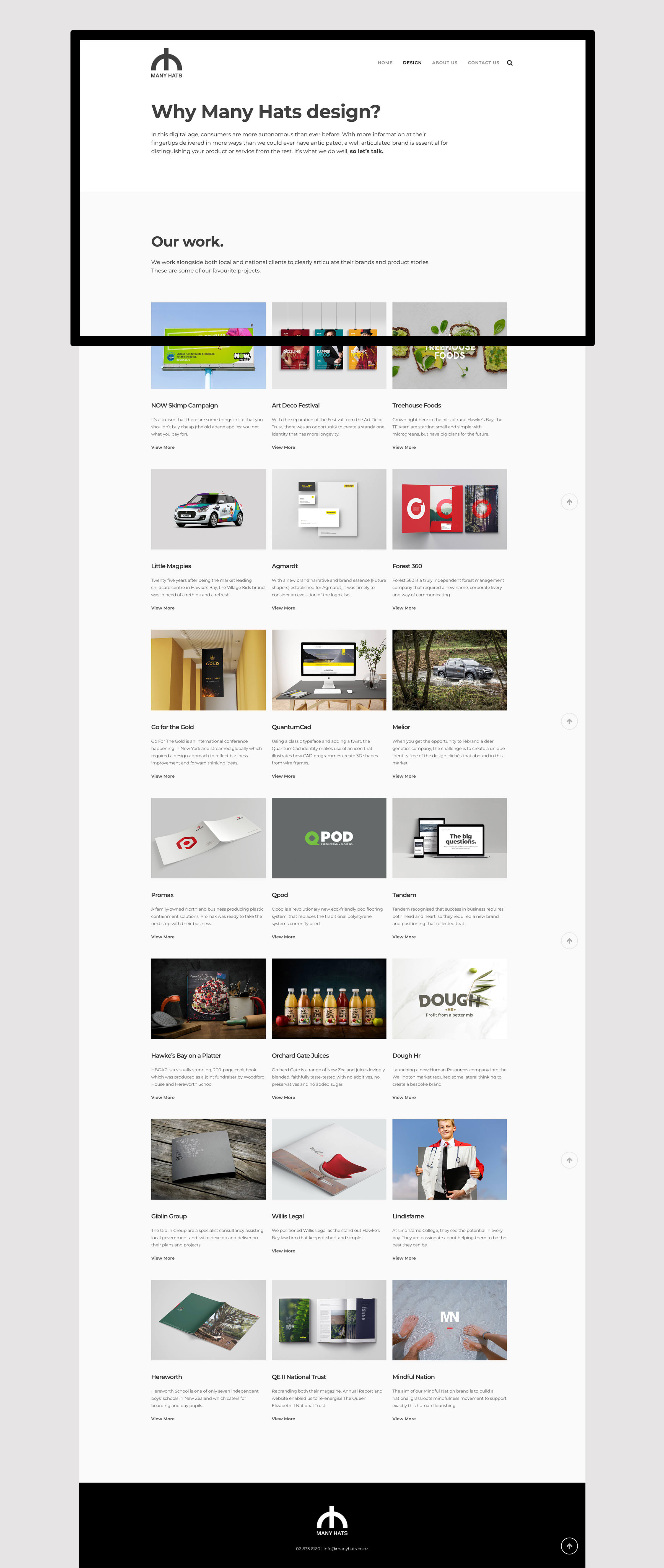 Many Hats are a highly successful business that create well considered design solutions. They required the new site to be simple yet confident and to showcased their work.