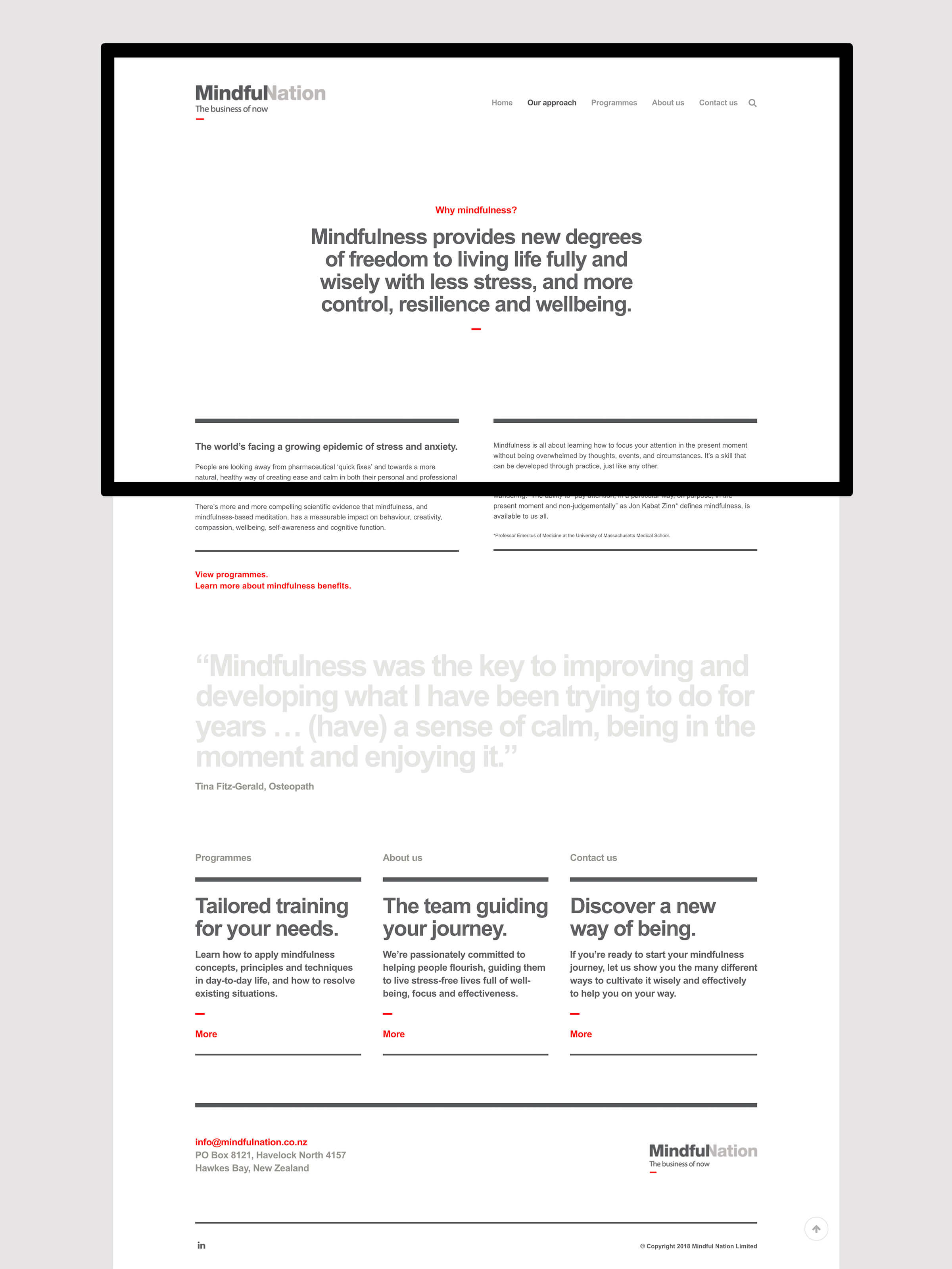 Mindful Nation is a business that teaches people Mindfulness. But unlike other Mindfulness practices, their focus was on how mindfulness techniques can not only benefit individuals, but help bring about postive changes in work with better team work and productivity.