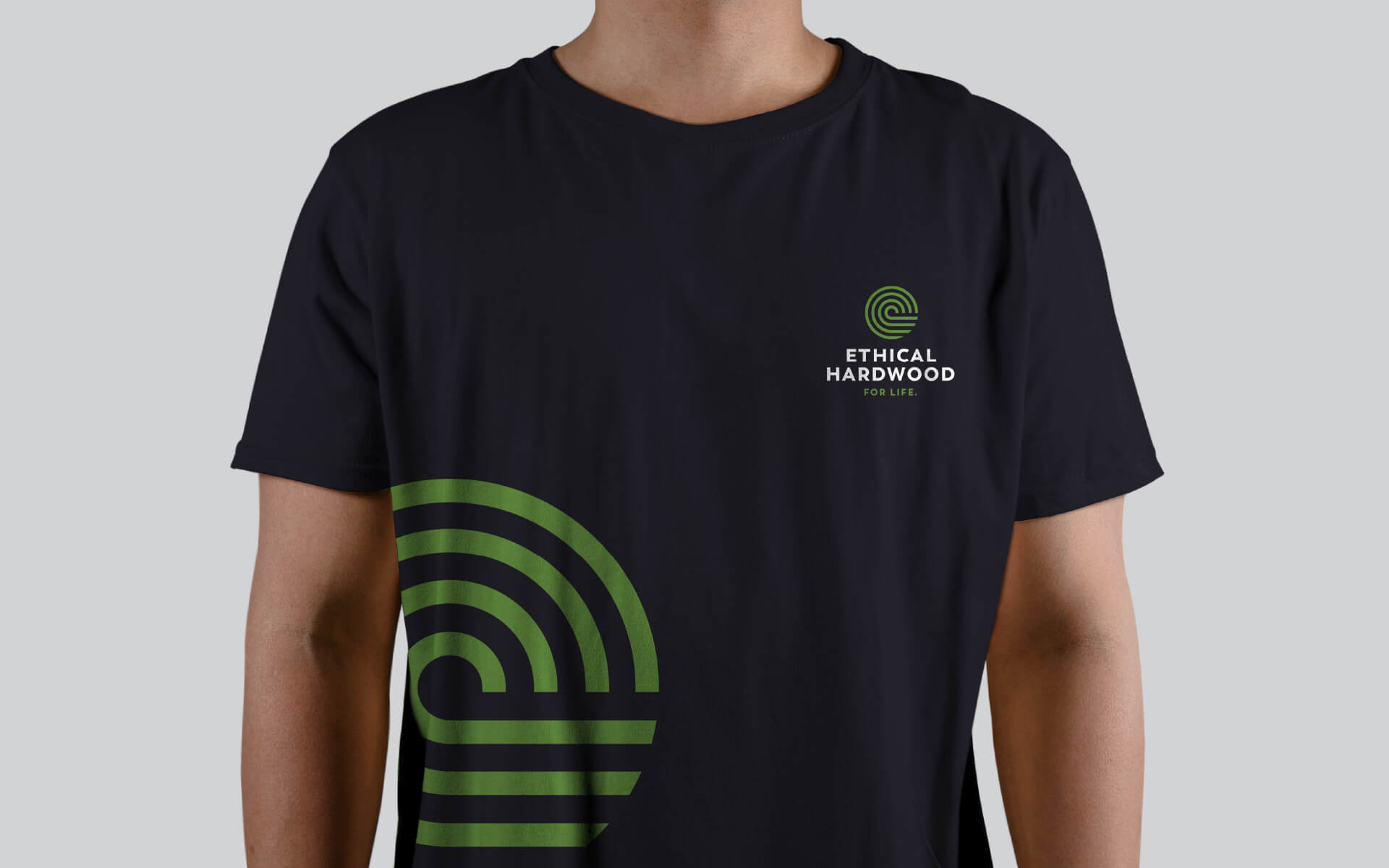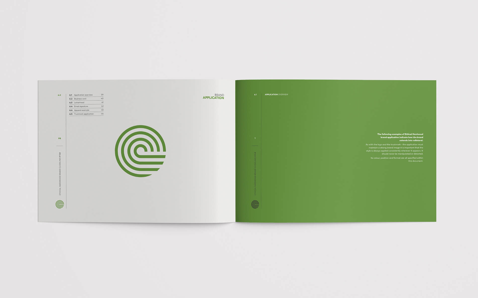 The design identity represents tree age rings, the cyclical nature and moving forward and the mark also resembles an ‘e’ for ‘ethical’ and it's interacting elements representing sectors working together to create a whole. The strapline was also devised in the design process.