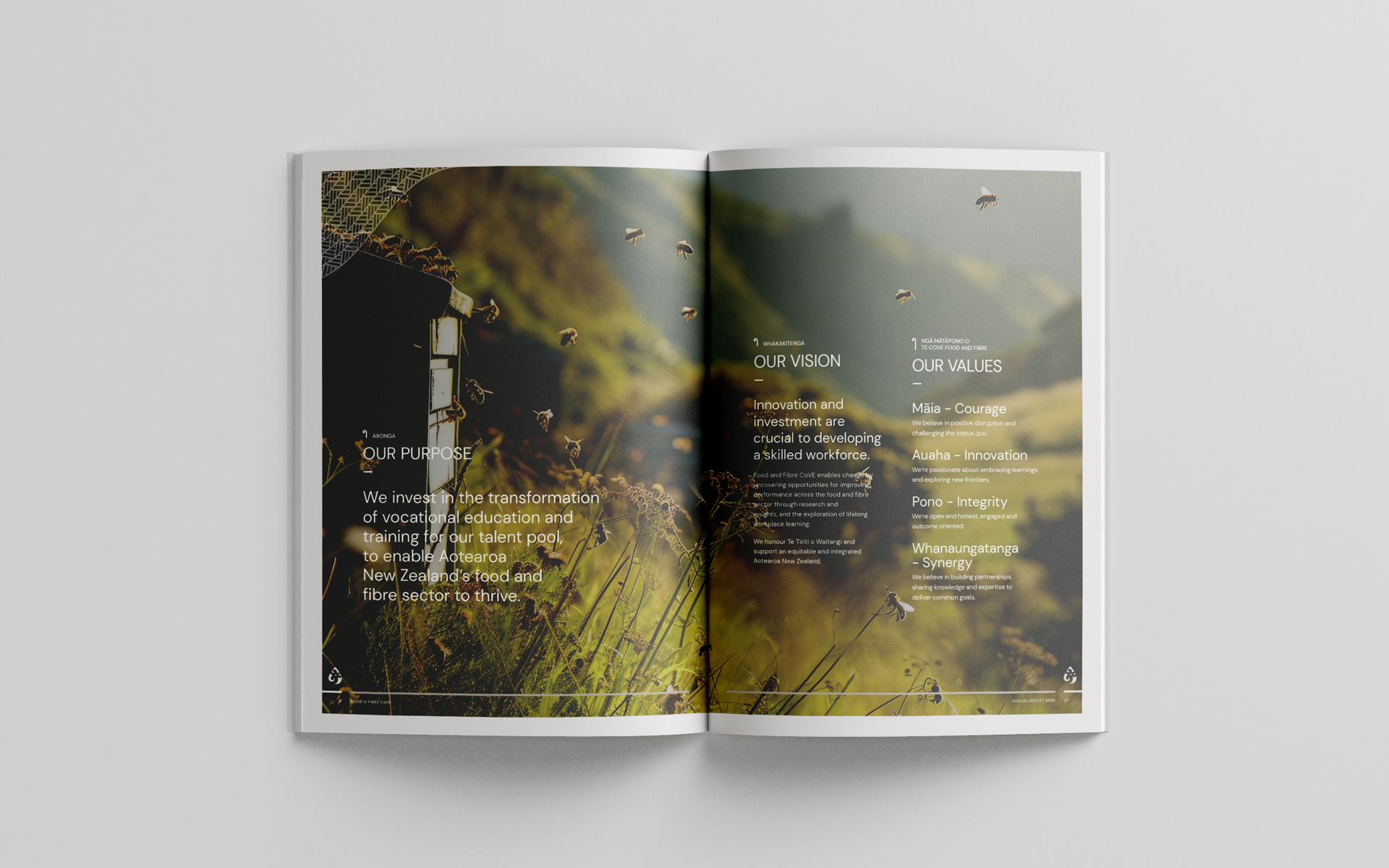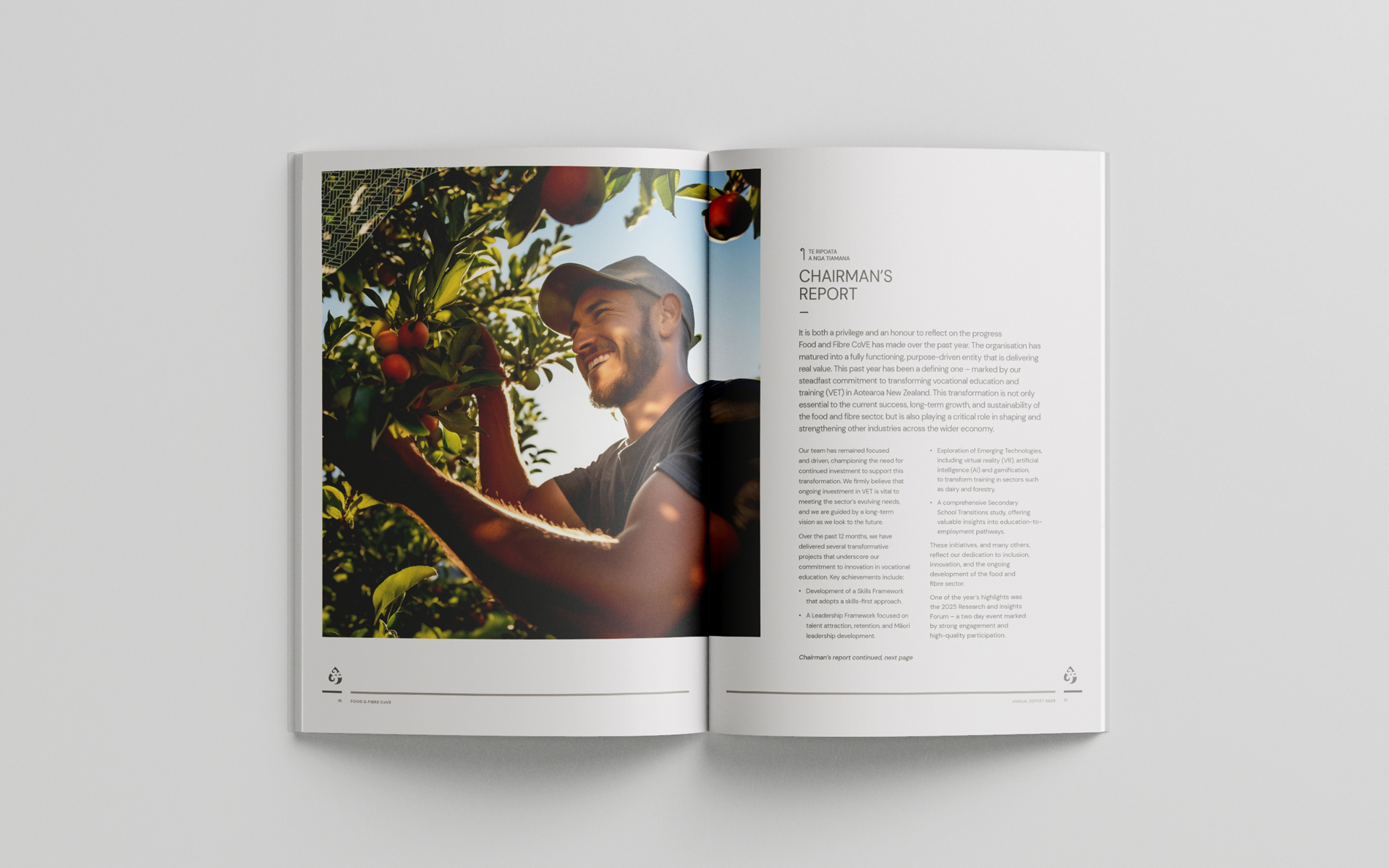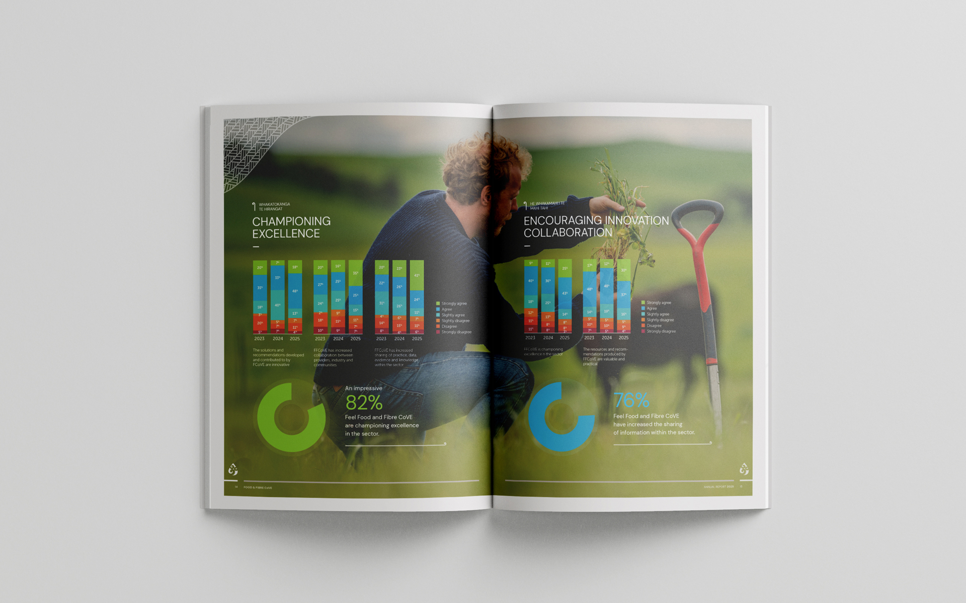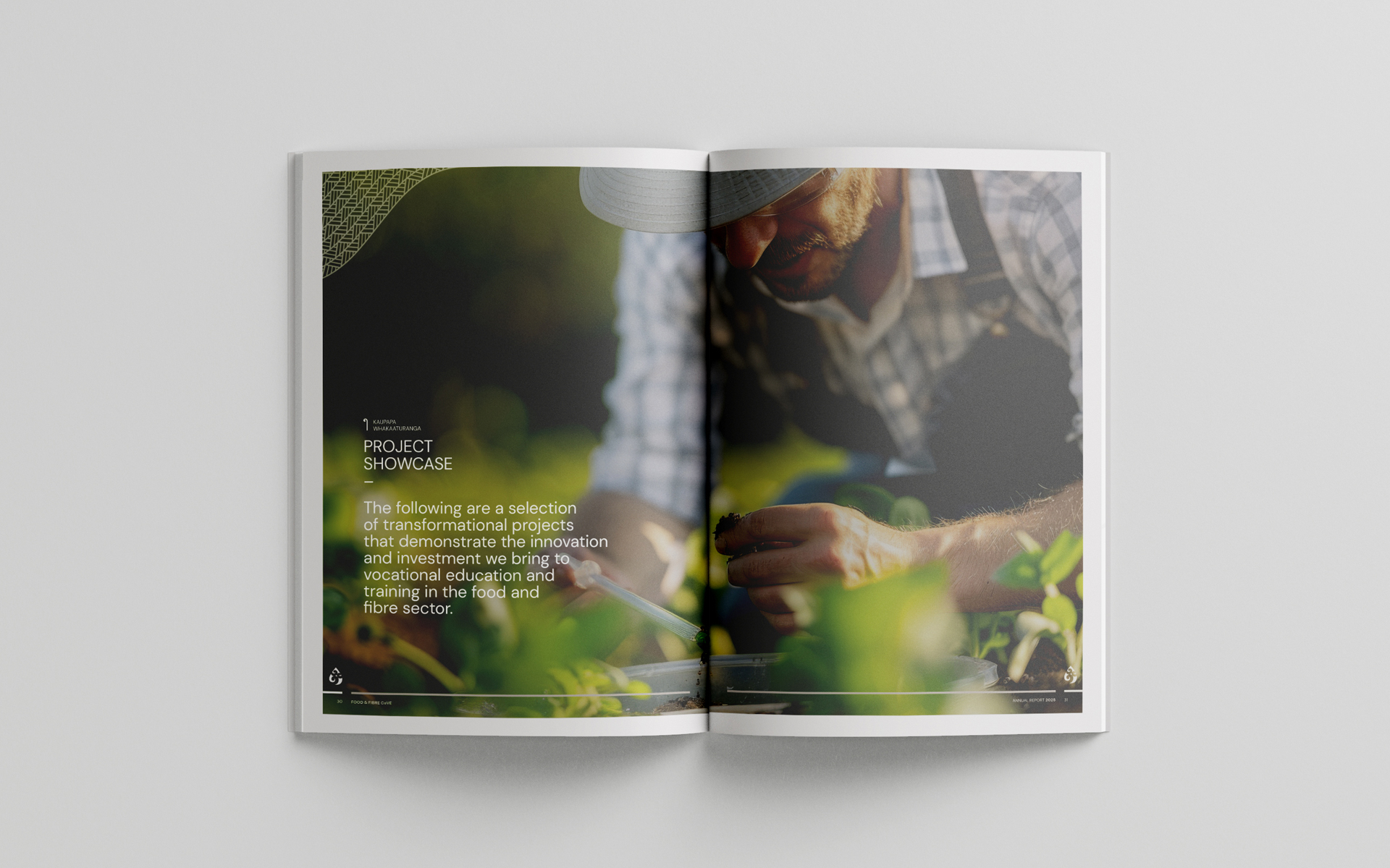Food & Fbre CoVE required a new design for their annual report, as the existing version was cumbersome and with a somewhat dated aesthetic.