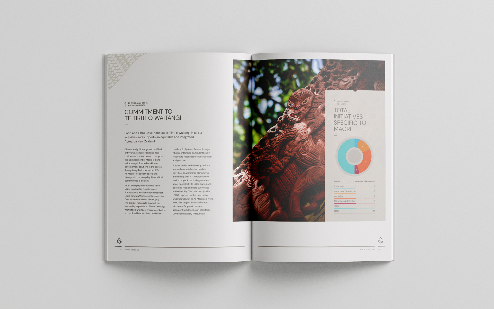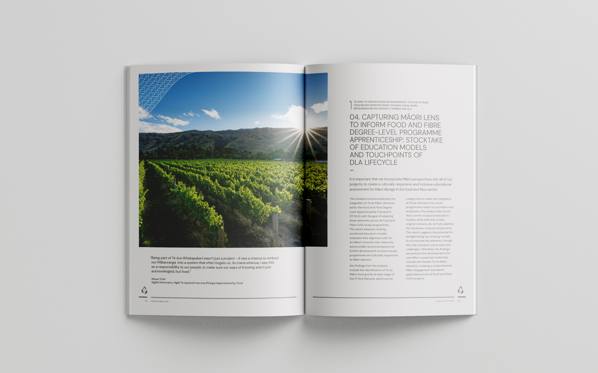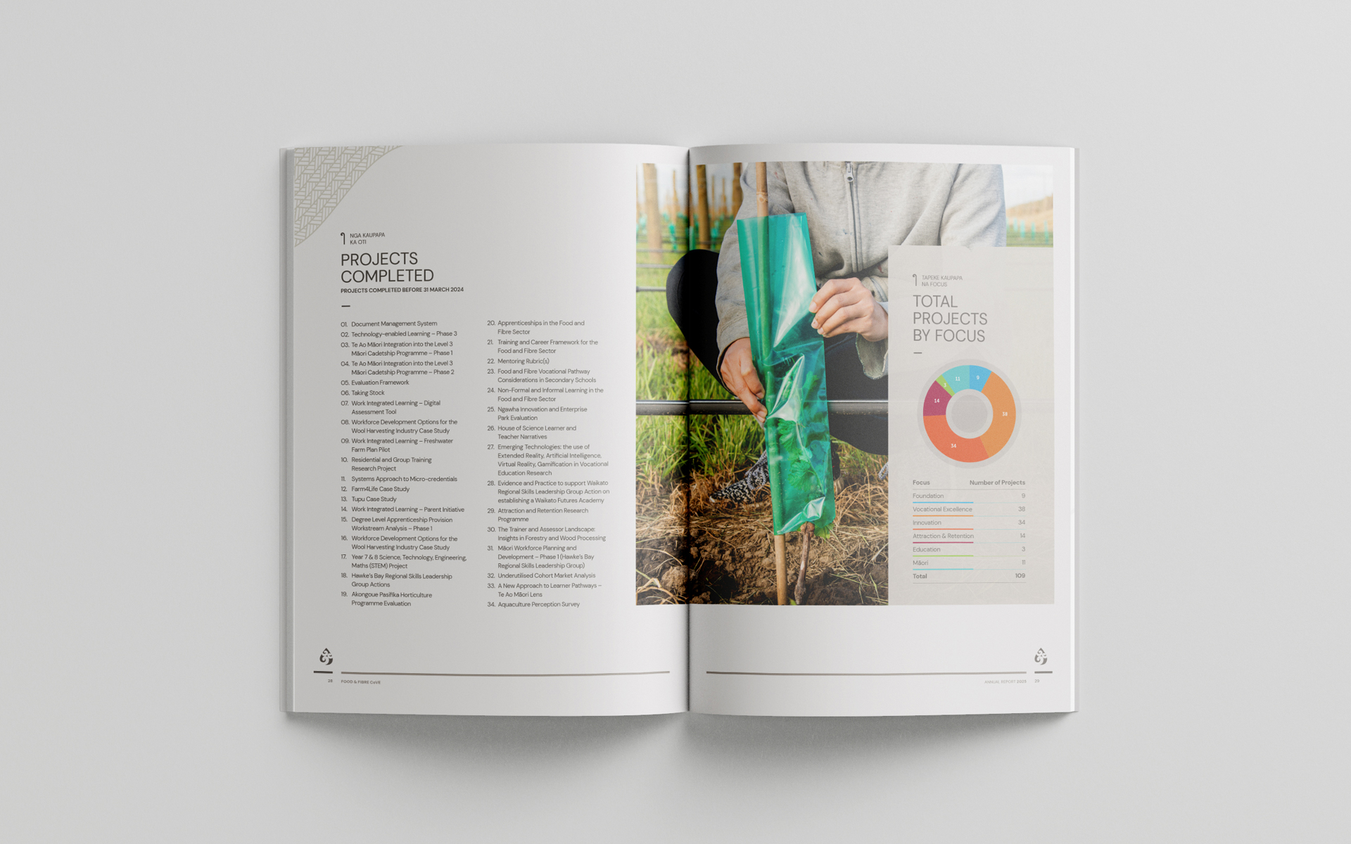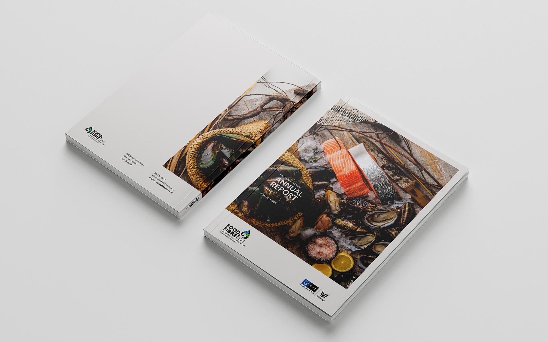 Food & Fbre CoVE required a new design for their annual report, as the existing version was cumbersome and with a somewhat dated aesthetic.