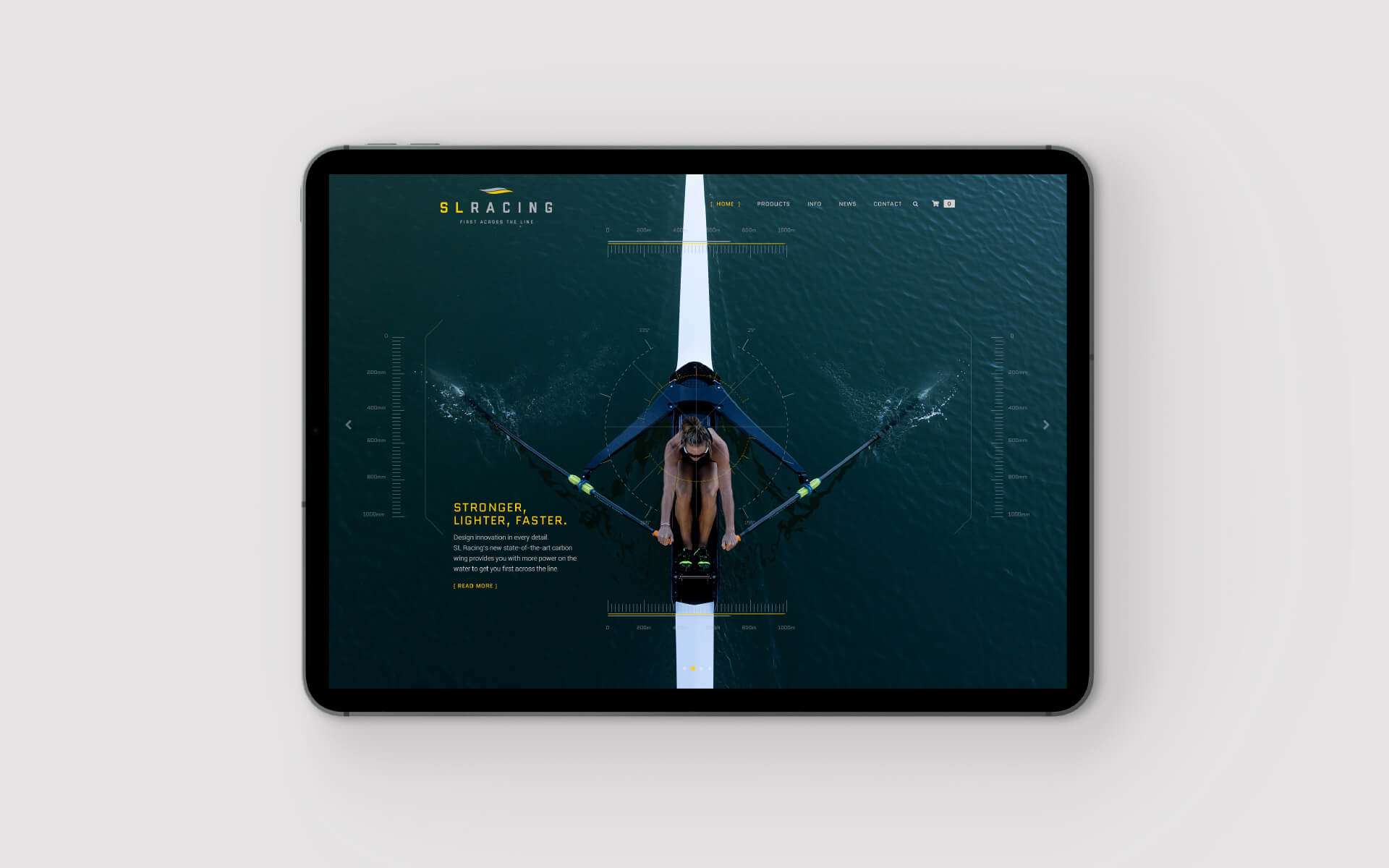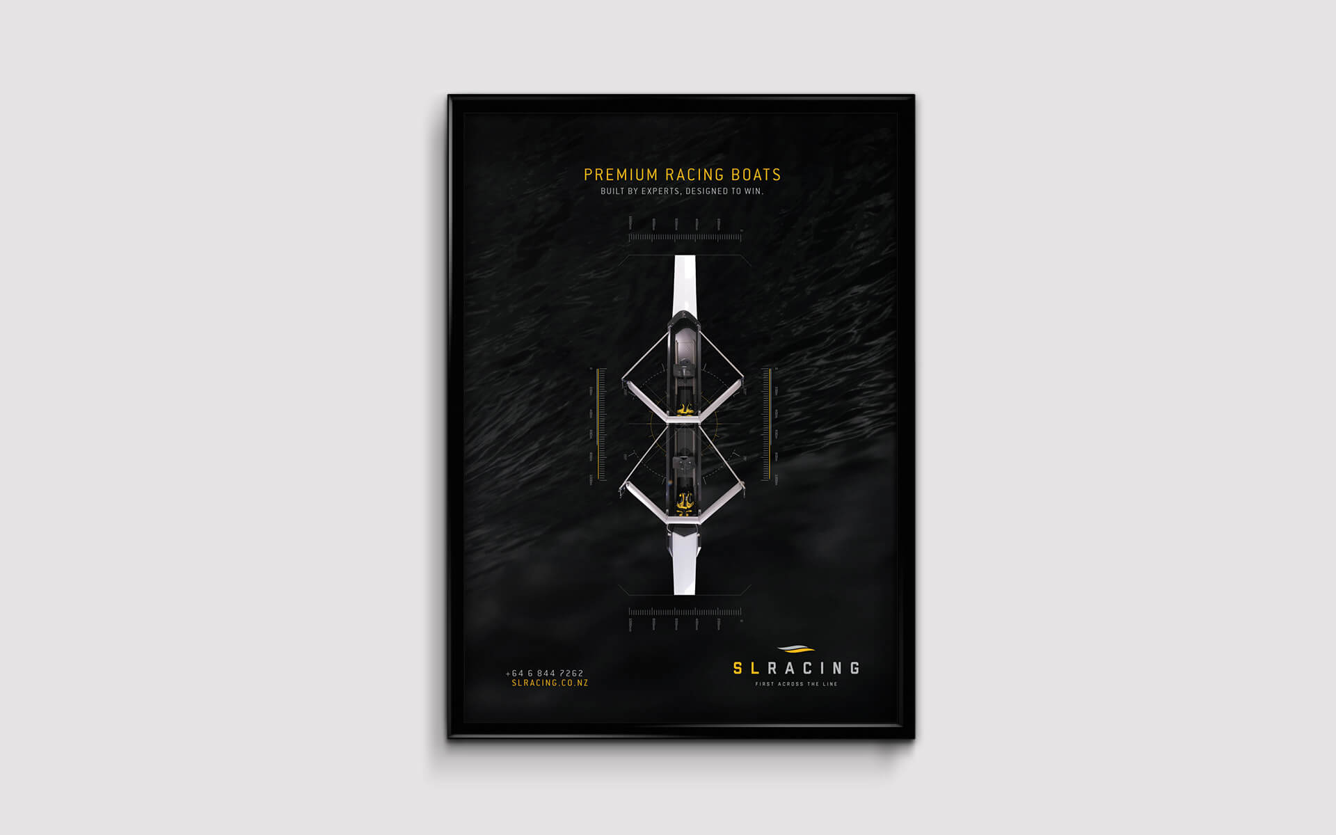 The brand was designed to be clear, sophisticated and to be used for multiple applications including racing shells and boat equipment The symbol represents movement in water and one element extending past the other to be 'first across the line'.
