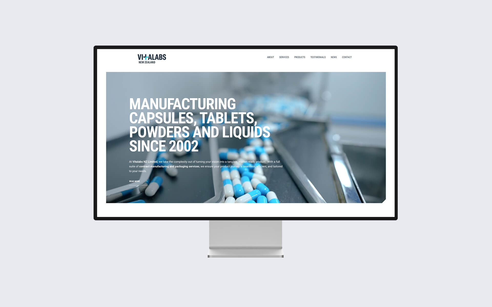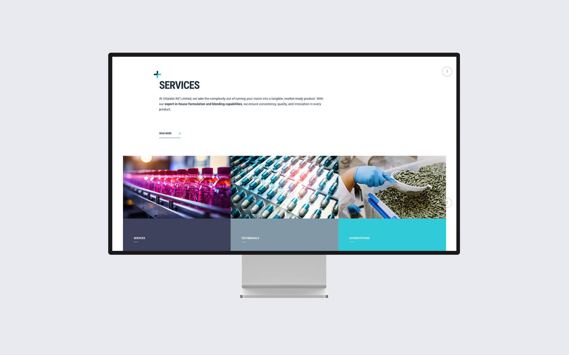 The website design is intended to not only showcase in a clear and visual way the expertise and range of services Vitalabs New Zealand provides, but to also create unique blocks which are both functional and elegant and create a modern, strong and confident online presence.